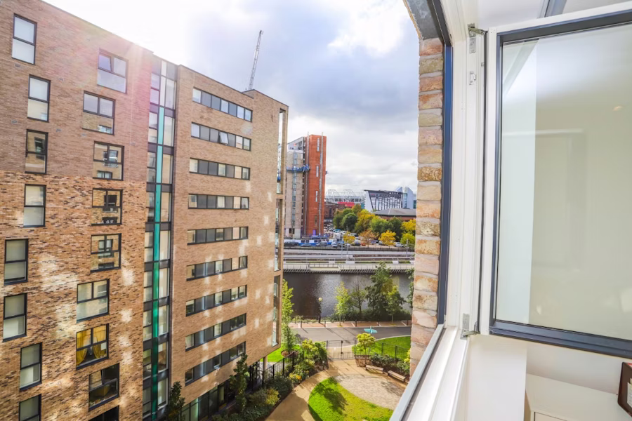 Clippers Quay on Salford Quays offers waterside views and is opposite Exchange Quay tram stop for direct access to Manchester city center. The development features a Co-Op, coffee shop, and a bar with outdoor seating. Old Trafford is visible from some apartments. Enjoy events like cheese and wine nights, kids clubs, and dog walks. Salford Watersports Centre, ideal for paddleboarding or open water swimming, is a short walk away.