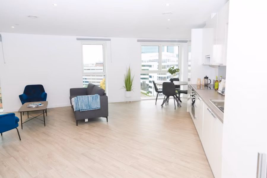 Clippers Quay on Salford Quays offers waterside views and is opposite Exchange Quay tram stop for direct access to Manchester city center. The development features a Co-Op, coffee shop, and a bar with outdoor seating. Old Trafford is visible from some apartments. Enjoy events like cheese and wine nights, kids clubs, and dog walks. Salford Watersports Centre, ideal for paddleboarding or open water swimming, is a short walk away.