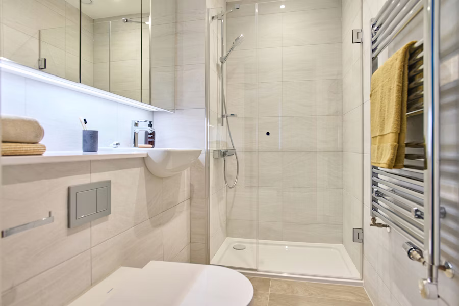 With shower, WC and vanity unit included.
